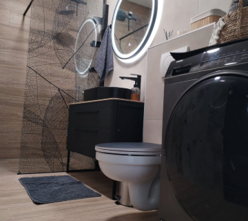 A clean, modern bathroom with everything you need for a comfortable stay. Fresh towels, good lighting, and a practical, well-kept space.