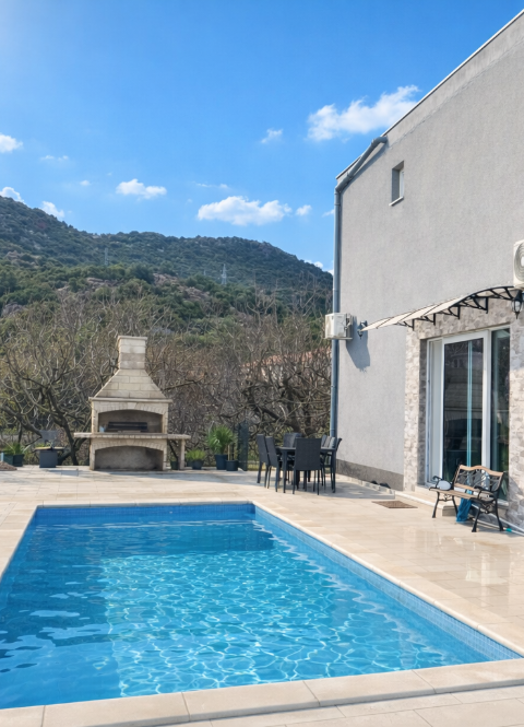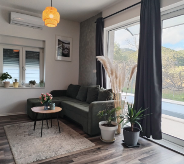A private holiday home designed for comfort and easy living, two bedrooms, a bright living area, a fully equipped kitchen, and a terrace with a private pool for relaxing days and quiet evenings.